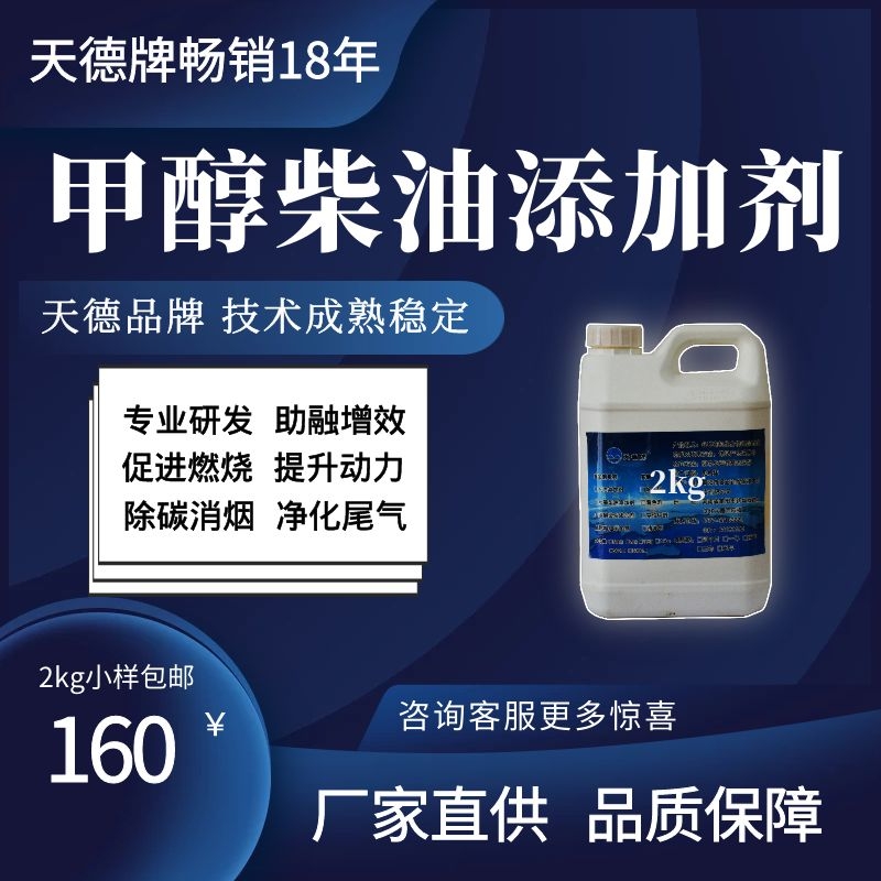 天德牌甲醇柴油添加劑(甲醇柴油助溶劑)是運用膠體表面化學原理,發(fā)明的一種納米型表面活化劑,實現(xiàn)了兩項技術創(chuàng)新:一是通過助溶劑使甲醇與柴油可以不同比例混溶,成品清澈透亮,遇水不乳化,不變白,且穩(wěn)定期長;二是該助溶劑能夠提高甲醇柴油的熱效率,滿足發(fā)動機的動力需求。